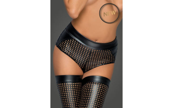 Hot laser cut shorts with a Powerwetlook waistband for long party nights.