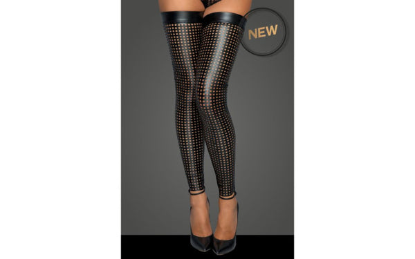 Trendy laser cut stockings with a silicone tape for the perfect fit.