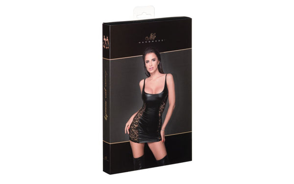 Playful dress made of Powerwetlook and sexy lace inserts for hot party nights