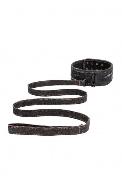 Denim Collar - With Leash - Roughend Denim Style - Black This versatile and exciting denim duo is the ideal combination for titillating BDSM play! Bring your sub or lover to heel when you fasten the collar and attach the lead using the quick-release clip for complete dominance! Measuring 108cm (42.5) including the loop, the lead allows you to keep your partner fully under control but gives enough range of movement for comfort. The collar comes with 2 lines of 4 push buttons to adjust the collar to a smallest inner diameter of 12cm (4.3) and ranging in 4 different sizes to the largest of 14cm (5.5). It has a total length of 48cm (18.9), a width of 5.5cm (1.8) and a total weight of 80 grams (2.83oz).