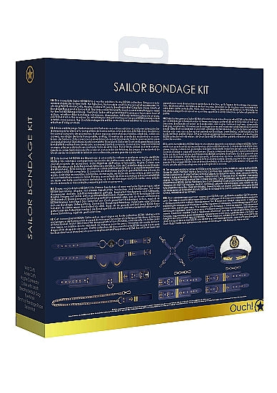 Sailor Bondage Kit Each kinky collection pretty much covers everything you need for the full BDSM experience. Guaranteed to give you hour upon hour of action, whether it be bondage, submission, domination, full body restraint, pleasure or pain, you'll find it all in just one box. So, whether you are just starting out on your BDSM journey or are a fetish connoisseur, the Ouch bondage kits will be a much-loved addition to your collection whether it's big or small. This incredible Sailor BDSM kit is a worthy addition to any BDSM collection. Bring your submissive shipmate to heel with this fabulous, fashionable and functional set of accessories.